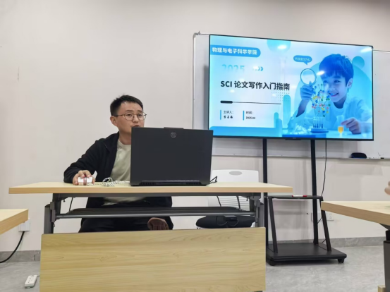 李占海则聚焦“SCI论文撰写”主题,以“小白如何攻克SCI”为切入点,分享了自己在求学期间发表了21篇高水平学术论文的励志故事。他科普了SCI的分区机制及其学术价值,强调高水平论文在升学、求职中的重要性。他从选题创新性、文献调研方法展开,结合自己发表论文的案例,逐步拆解了论文写作逻辑。