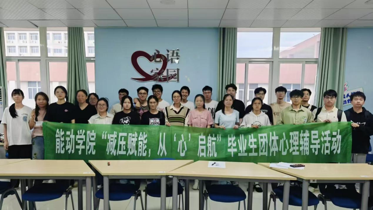 5月23日,能动学院“减压赋能,从‘心’起航”毕业生团体辅导在新能源2栋503举行。本次活动由院心理部组织开展,30名同学报名参与。