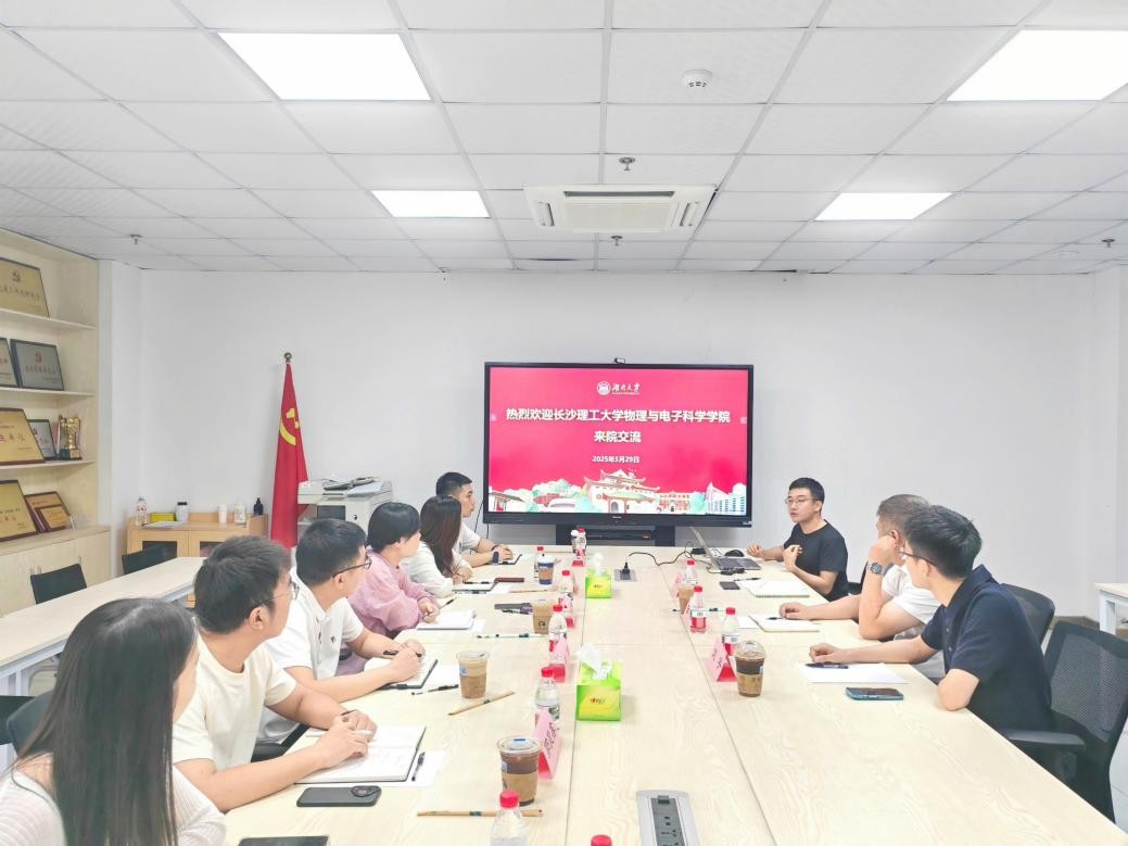 5月30日上午,物电学院党委副书记叶正芳带领全体学工团队赴湖南大学物理与微电子科学学院(以下简称“湖大物电院”)开展交流研讨,湖大物电院党委副书记田锐出席交流会,辅导员李远庆、刘宇参加交流会。