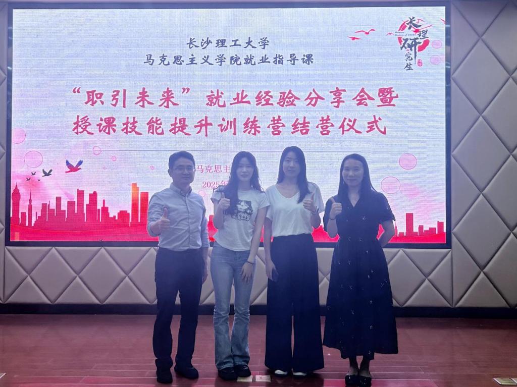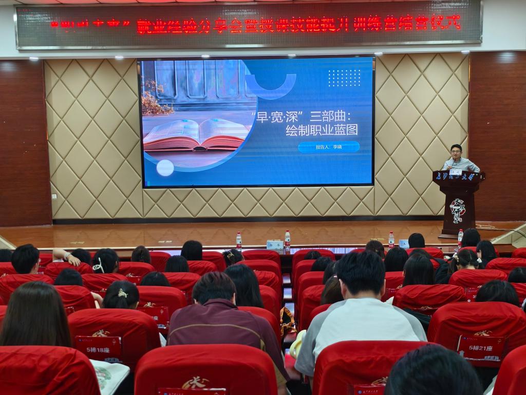 为助力学生明晰职业方向、提升就业竞争力,6月3日晚,马克思主义学院在云塘校区文科楼A200报告厅举办了“职引未来”就业经验分享会暨授课技能提升训练营结营仪式。本次活动由院学生工作办公室主任曾蓓主持,邀请优秀学员和优秀毕业生作为嘉宾分享讲课和就业经验,院党委副书记李晓、副院长郭华,以及2023级、2024级全体研究生参加。