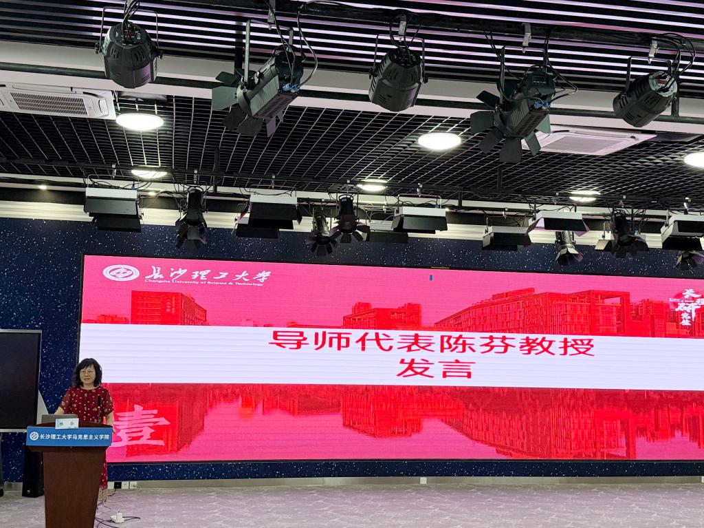 导师代表陈芬教授发言。她提出毕业是辉煌的里程碑,更是充满未知挑战的新起点。她对同学们的未来发展提出几点思考:第一,职业操守和规则意识是职业生涯不可逾越的生命线;第二,将低谷转化为反思沉淀和再次出发的契机,是贯穿一生的必修课;第三,坚持锻炼、身心健康是最大的财富。