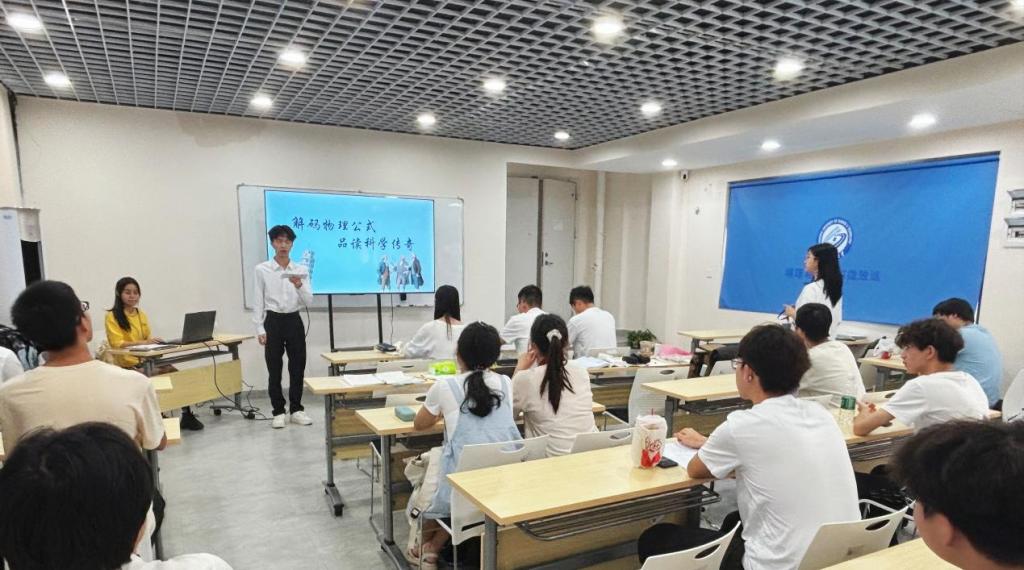 6月27日下午,物电学院在云塘校区敏行轩四栋“一站式”学生社区开展“解码物理公式,品读科学传奇”主题宣讲比赛。六位宣讲员通过抽签选定物理公式,解读其背后的故事。他们以声线为笔、情感为墨,在沉浸式宣讲中,带领现场学子展开了一场跨越时空的物理探索之旅。