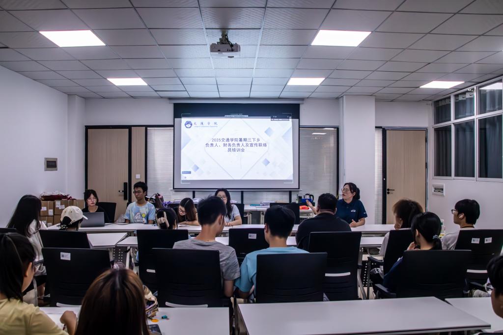 为扎实推进2025年暑期“三下乡”社会实践活动,提升团队负责人组织协调能力与宣传联络员专业素养,6月30日下午,交通学院在云塘校区工科二号楼B417会议室开展培训。院学生会办公室周芊芊、史丽雯,新媒体中心宾俊峰,青年志愿者协会沈雅丽及宣传部丁宇怡担任主讲人,各实践团队负责人及宣传骨干共20余人参与培训。