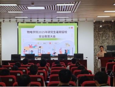 为扎实落实学校暑期留校学生管理要求,全方位筑牢假期安全防线,7月7日15时,物电学院研究生暑期留校安全教育专题会议在云塘校区理科楼召开,全体留校研究生参会,会议由研究生辅导员蒋琳嫒主持。