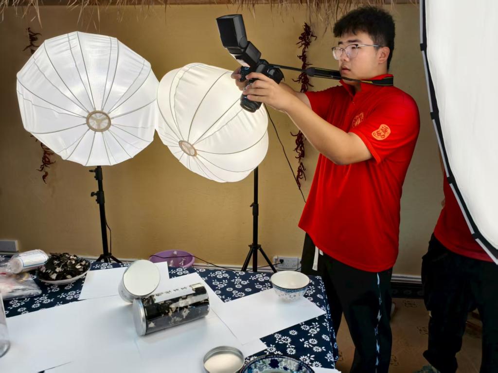 在村支部的组织下,队员们扛着相机,为当地的石耳、盐菜、土鸡蛋、干香菇等特色农产品拍摄直播间宣传图。这不仅是一次专业技能助力乡村振兴的实践,更让深藏山乡的优质食材通过镜头展现出独特魅力。