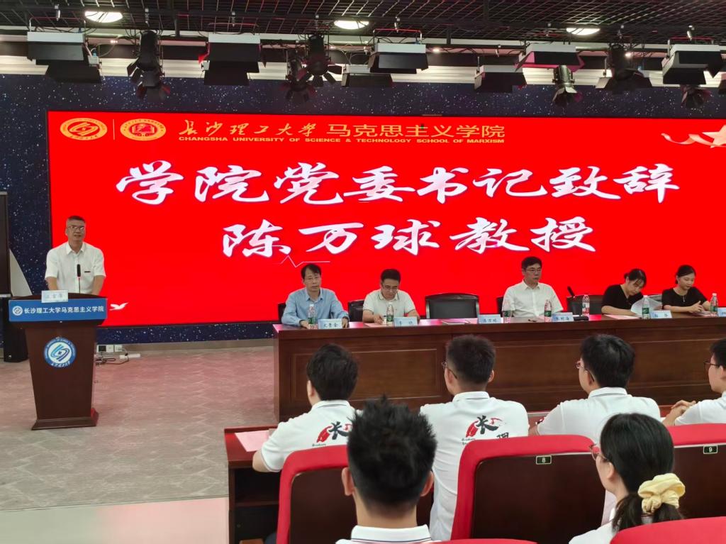 陈万球向新生表示诚挚祝贺。他介绍了本届新生的基本情况。结合马克思主义的时代价值,他提出“博学之、力行之、守正之、拓新之”四点期望,勉励新生牢记“博学、力行、守正、拓新”的校训,勇担“在马言马、在马信马、在马护马”的使命,将个人成长融入国家发展大局。