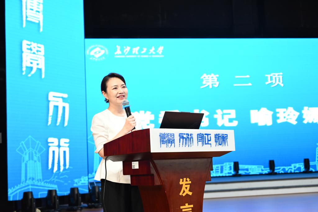 活动伊始,喻玲娜热烈欢迎新生加入学院大家庭,充分肯定大家在军训中展现的“不畏艰难、意志如磐”品质。她寄语新生以“智守江河绿”的追求涵养胸襟,以“积水成渊”的坚持锤炼本领,以“心系家国”的情怀勇担使命,做全面发展、本领过硬、矢志报国的水利人。