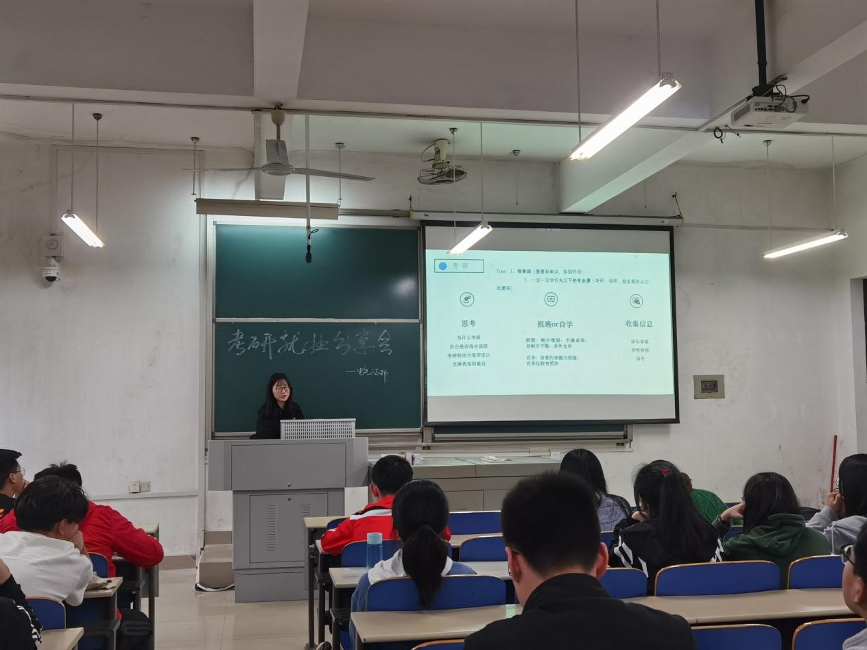 袁雨薇、罗尚松、张龙渠、王阳、罗强5位同学则分别介绍了国网、南网和非全的情况,强调了专业学习的重要性,鼓励学弟学妹们多参与社会实践,提升自身综合实力,充实自己的简历。
