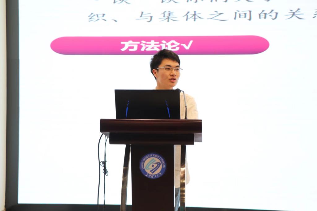胡景谱用自己的例子引出“个人利益与组织、集体之间的关系”。他从唯物辩证法出发,谈论了如何理解人的自我价值与社会价值的统一,强调每名党员都应坚持集体利益高于个人利益。