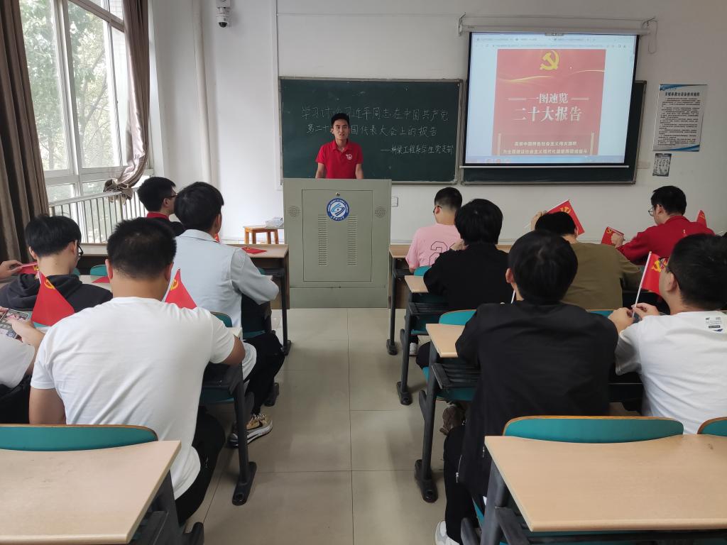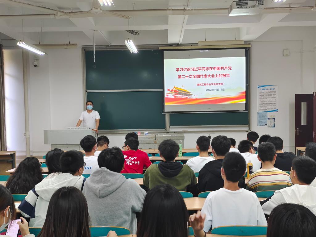 10月16日-10月18日,土木工程学院各学生党支部召开党员大会,学习习近平总书记在中国共产党第二十次全国代表大会上的报告,由支部书记进行领学。