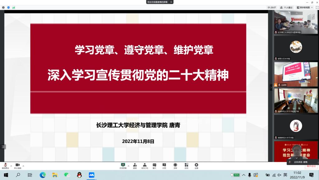 11月9日上午十时,437必赢会员中心经济与管理学院与中南大学建筑与艺术学院、机电工程学院以及湖南师范大学文学院的辅导员们云相聚,举行“学习二十大精神·担负新征程使命”的联合学习交流会。