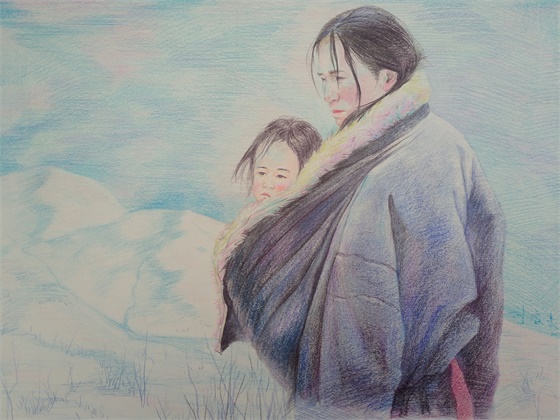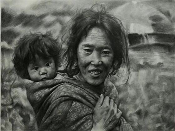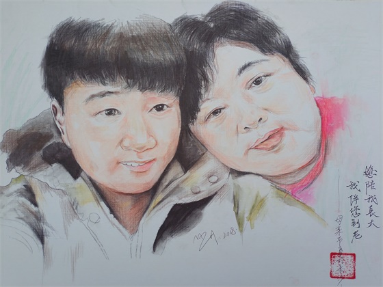 在优秀作品展示现场,同学们的画作类型多样,素描、漫画、简笔画、水彩、工笔画、水墨等应有尽有。来自环艺1606班的同学马忠豪用彩铅画了自己和妈妈的合照,他说:“这是我第一次画妈妈。我画过很多山水花鸟,竟然却没有画过一次我最美的妈妈。我画哭了,我不知道有多少跟我一样鼓起勇气画自己母亲的同学,这个母亲节真的不一样。”服装1603班的同学何景恒用精微素描的方式在纸上勾勒出了一位母亲背着襁褓里的婴儿的形象,笔触细腻,表情动人。这幅画吸引了许多同学驻足观看,他们称赞这幅画里所蕴含的母爱让人身临其境。