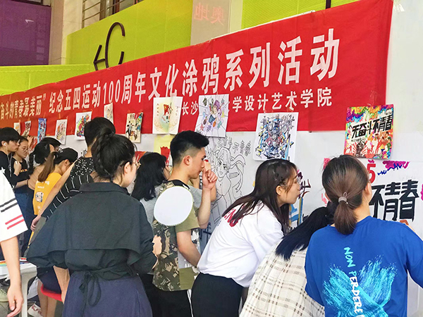 本次活动意在弘扬五四精神,纪念五四运动100周年。活动一经发起便收到广大同学们的积极参加。共收到作品80余份,其中30份进入总决赛。决赛现场每一位作者都认真描摹着自己的作品,涂鸦风格多样,内容丰富、创意大胆,成为建筑艺术楼大厅里一道靓丽的风景线,引得路人频频驻足欣赏。