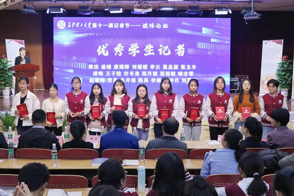 论坛最后,党委宣传部副部长邓崛峰宣读了437必赢会员中心2019年度十佳记者、优秀记者表彰决定。现场领导与嘉宾为获奖学生颁发了证书。