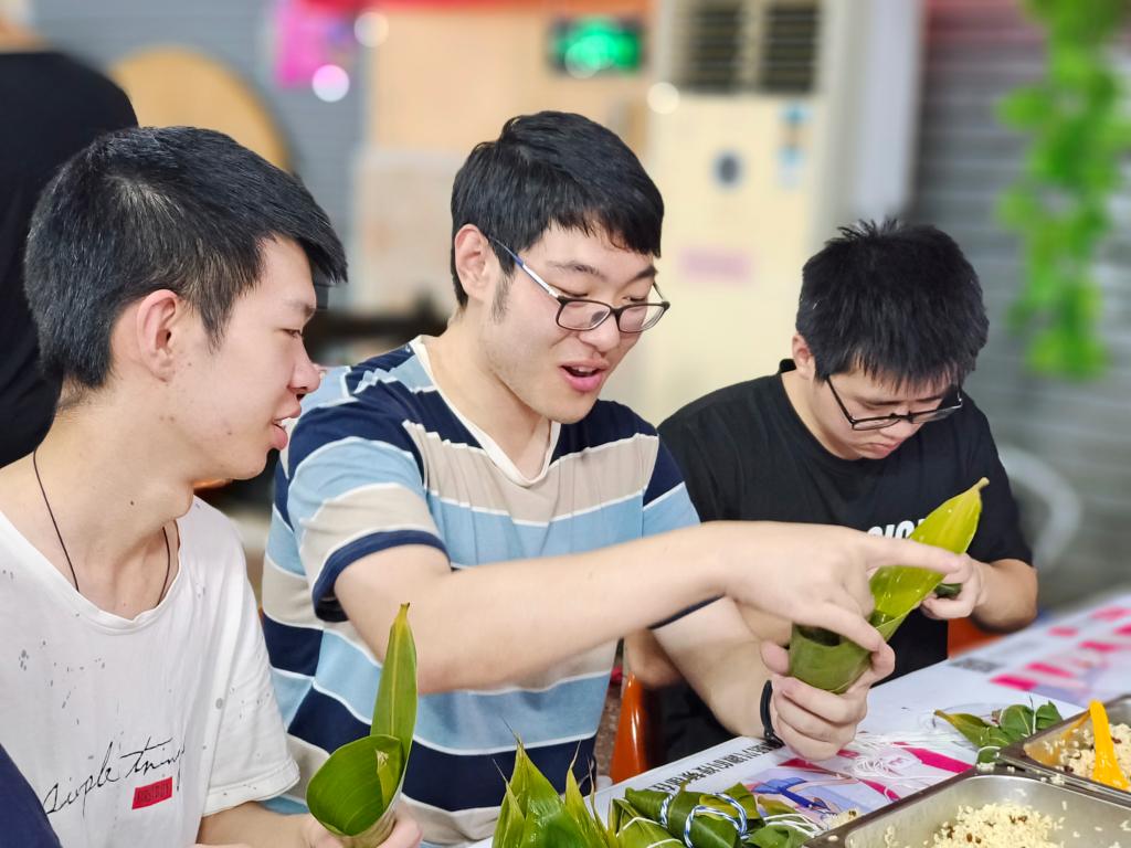 活动现场,师生们将各种各样的“自制”馅料填入绿莹莹的棕“肚”中,再一裹一缠一系,一道道工序有条不紊。不一会儿,一个个形状饱满的“暖心粽”就完成了。与此同时,同学们还一起回顾着端午节蕴含的传统文化,从屈原投江的传说,到挂艾草与菖蒲、吃粽子、喝雄黄酒、赛龙舟……大家分享着彼此的劳动成果和收获的知识,现场一时之间充满了欢声笑语。他们纷纷表示,今年的端午节过得十分有意义,掌握了包粽子的技巧,感受到了劳动的乐趣,更领略到了中华优秀传统文化的魅力。活动最后,同学们还将一个个热腾腾的粽子分享给辛勤工作的宿管阿姨和门卫保安,传递着节日美好的祝福。