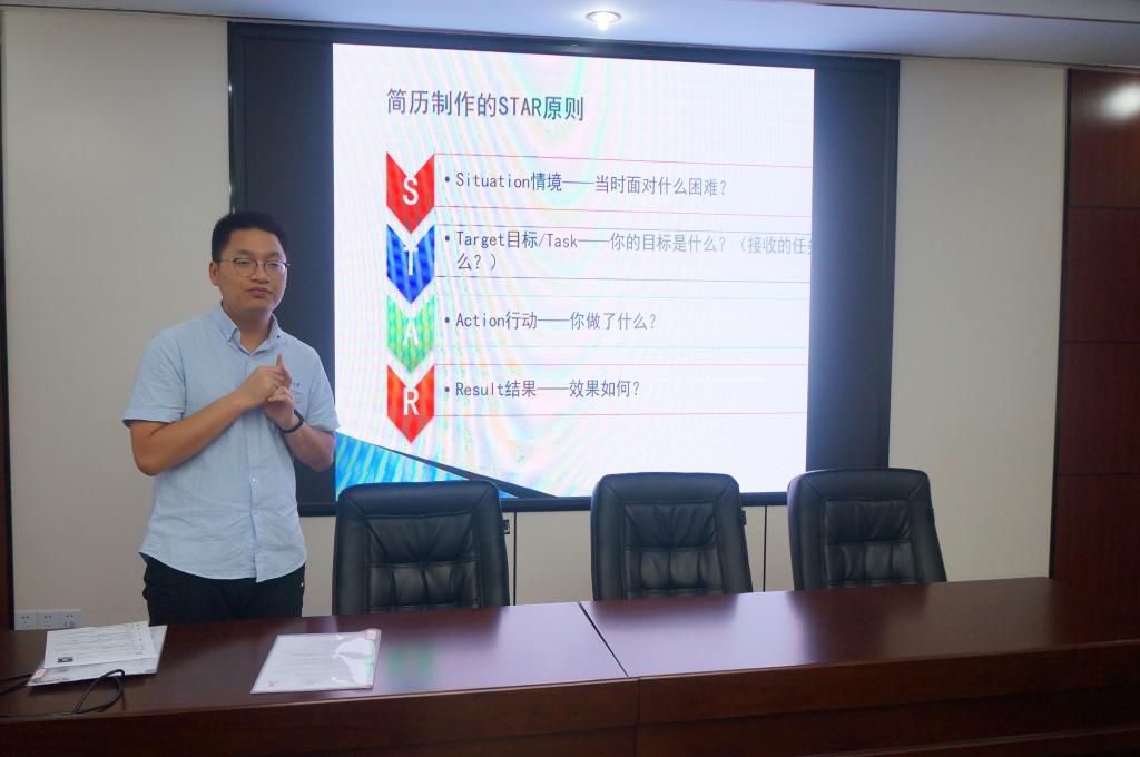 龚晓斌分享了自身实习经历,之后根据同学们的提问,对岗位匹配度以及岗位的选择作了详细的解答,并指出要先了解企业的具体岗位信息,根据企业的岗位信息来寻找最合适自己的企业。最后,两位嘉宾向同学们进行了一对一的简历指导,指出简历中仍能改善的地方。