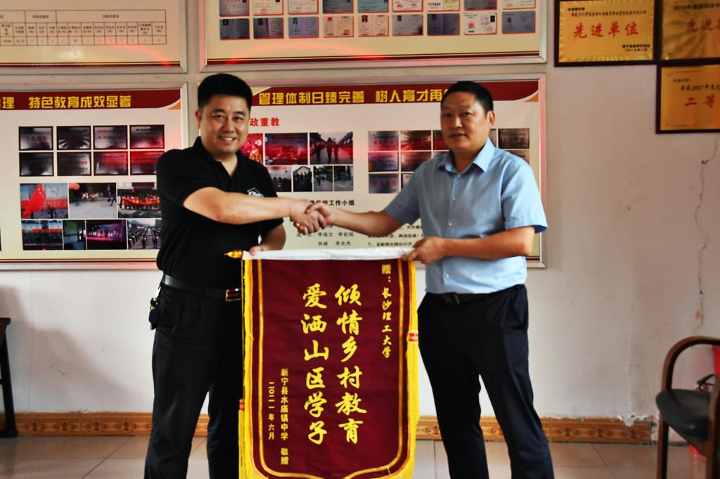 送别仪式最后,水庙镇中学向必赢官网赠送锦旗表示感谢。