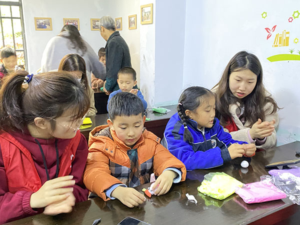 第五次志愿活动以暖春之际,动物集结”为主题。活动伊始,“艺力量”志愿者们通过讲故事以及问答的活动形式,充分勾起小朋友们对动物的喜爱和想象。以此为切入点,志愿者细心热情的服务得到了小朋友们的认可,一张张笑脸洋溢在孩子们的脸庞。在志愿者耐心帮助下,小朋友们用黏土将艺术性、趣味性、创造性融于作品之中,塑造出一个个栩栩如生的小动物。志愿者们用一颗颗跃动着、充满着爱的心,完成着爱的传递。整个活动氛围和谐融洽孩子们天真的笑颜也感染着每一个志愿者。