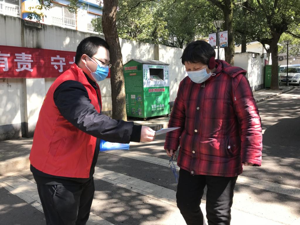 长沙市天心区黑石铺社区的防疫队伍当中出现了一张新面孔,他和社区志愿者一道,发放宣传单,登记外来人员信息,到每家每户,宣传并登记居民情况。这个志愿者就是继续教育学院16土木一班的学生党员戴博睿。