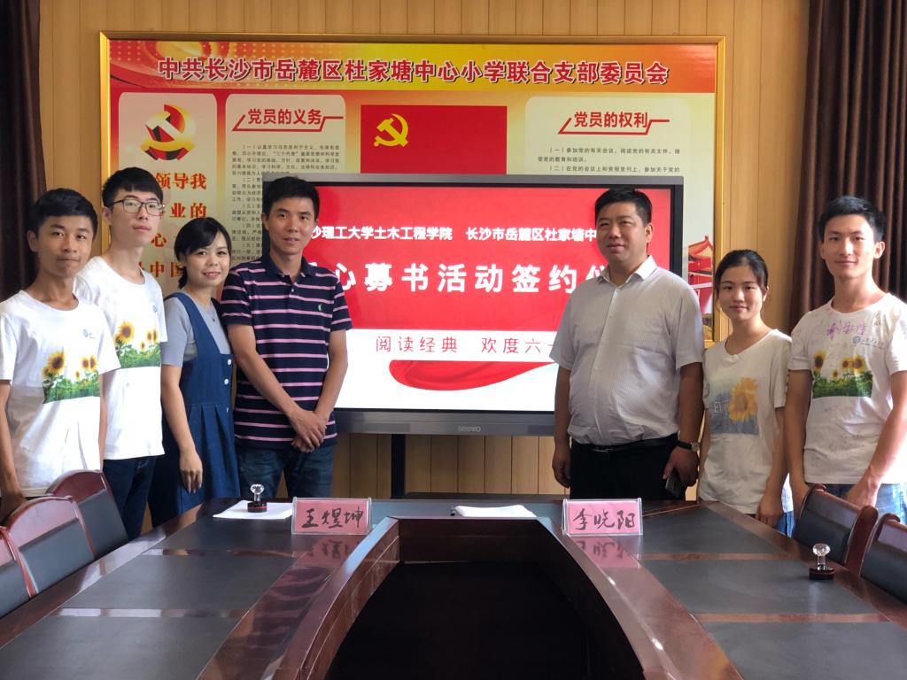 根据爱心募书合作协议,杜家塘小学将发动教师捐赠、募集善款购置《弟子规》、《三字经》、《增广贤文》等国学经典读本1000册,由土木工程学院团委组织学生志愿者团队暑期送往怀化地区上寨村小学、下寨村小学、渭溪九校、张家滩九校等四校,并开展“传承中华优秀传统文化”系列教育活动。