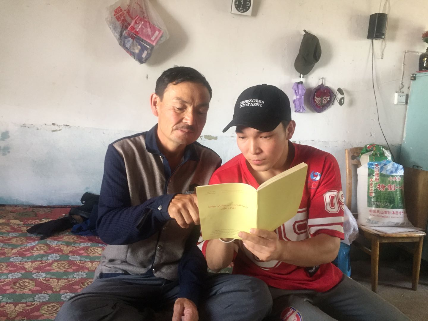 吐苏莱汗用哈萨克语说:"很高兴村委会安排一个有知识的大学生来给我讲解法律和党的新政策,吐苏莱汗没上过太多的学,他的四个孩子们都在外面打工,家里常年就他一位在,汉语说得也不是很好,因为语言的障碍,导致他对一些法律的认识和理解有误差,需要麻烦左邻右舍来帮助理解和消化一些新出的政策和法律知识,现在好了,村委会安排了几个大学生来家中讲解法律知识,对于我来说,方便很多。很高兴生活在五星红旗下!"