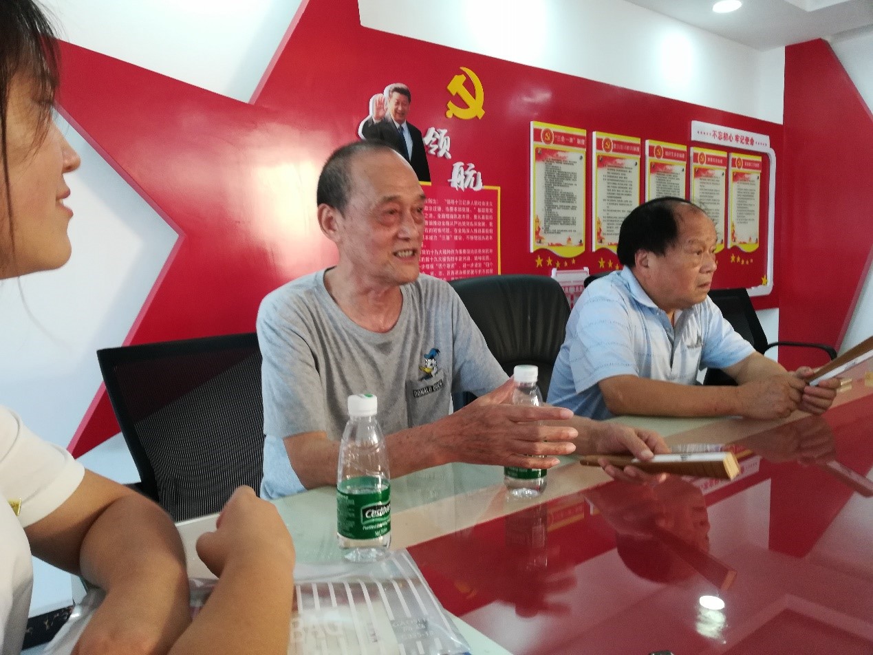 719日上午,计算机与通信工程学院勇松志愿服务暑期实践团在金岭路社区开始了第二天的志愿服务工作。志愿者们与两名老党员进行深入访谈,在了解党员故事的同时,宣传邹勇松同学的优秀事迹。