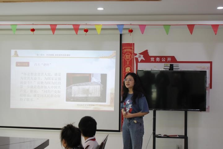 7月6日,437必赢会员中心理论宣讲进基层专业实践团成员将红色故事送到长沙市天心区青园街道井湾子社区,研究生宣讲团张苏湘、肖孟两位讲师以《共产党员的高风亮节——彭德怀元帅》为主题,为社区的孩子们带来了别开生面的党史学习教育讲座。
