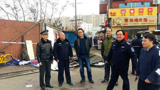 为方便师生安全出行,净化校园周边环境,1月8日下午,保卫处与天心区先锋街道联合开展了云塘校区西门区域违规门面、摊点的集中整治行动,先锋街道副主任皮东奎、城管中队长聂文军、保卫处处长张祎、副处长伍接朝等带领城管队员和保卫干部一起开展整治行动。