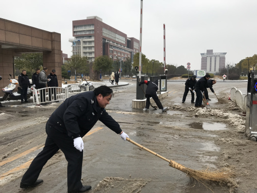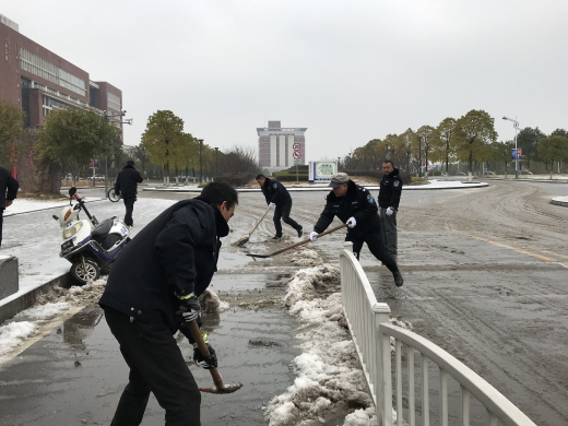 1月25日晚,长沙市迎来了2018年首场降雪,必赢官网校园也银装素裹,十分美丽,但也给教职员工出行带来不便,存在交通、消防等一些安全隐患。