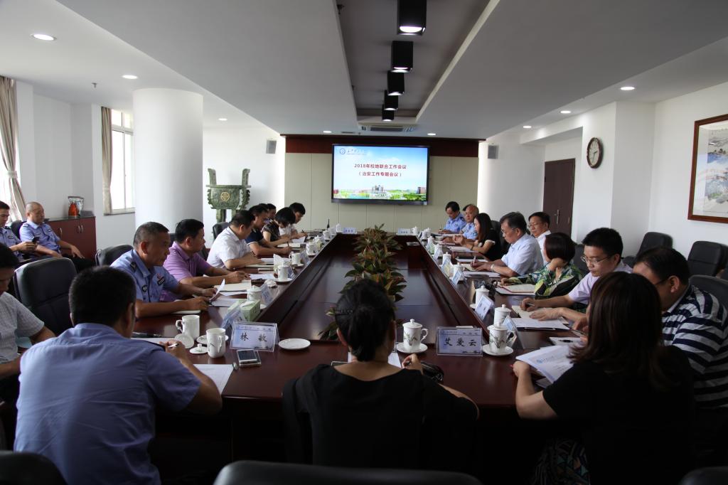 为进一步加强校地合作,共同创建平安校园,9月20日下午,校地联合办公室在一办四会议室召开校地联合工作会议,专题研究必赢官网的治安工作,探讨治安安全的防范管理措施,切实降低发案率,天心区委政法委书记黄文先携校地联合办公室成员单位有关政府部门负责人一行参加会议,校党委书记付宏渊、副校长谈传生出席了会议,校党委委员付嫦娥主持会议。