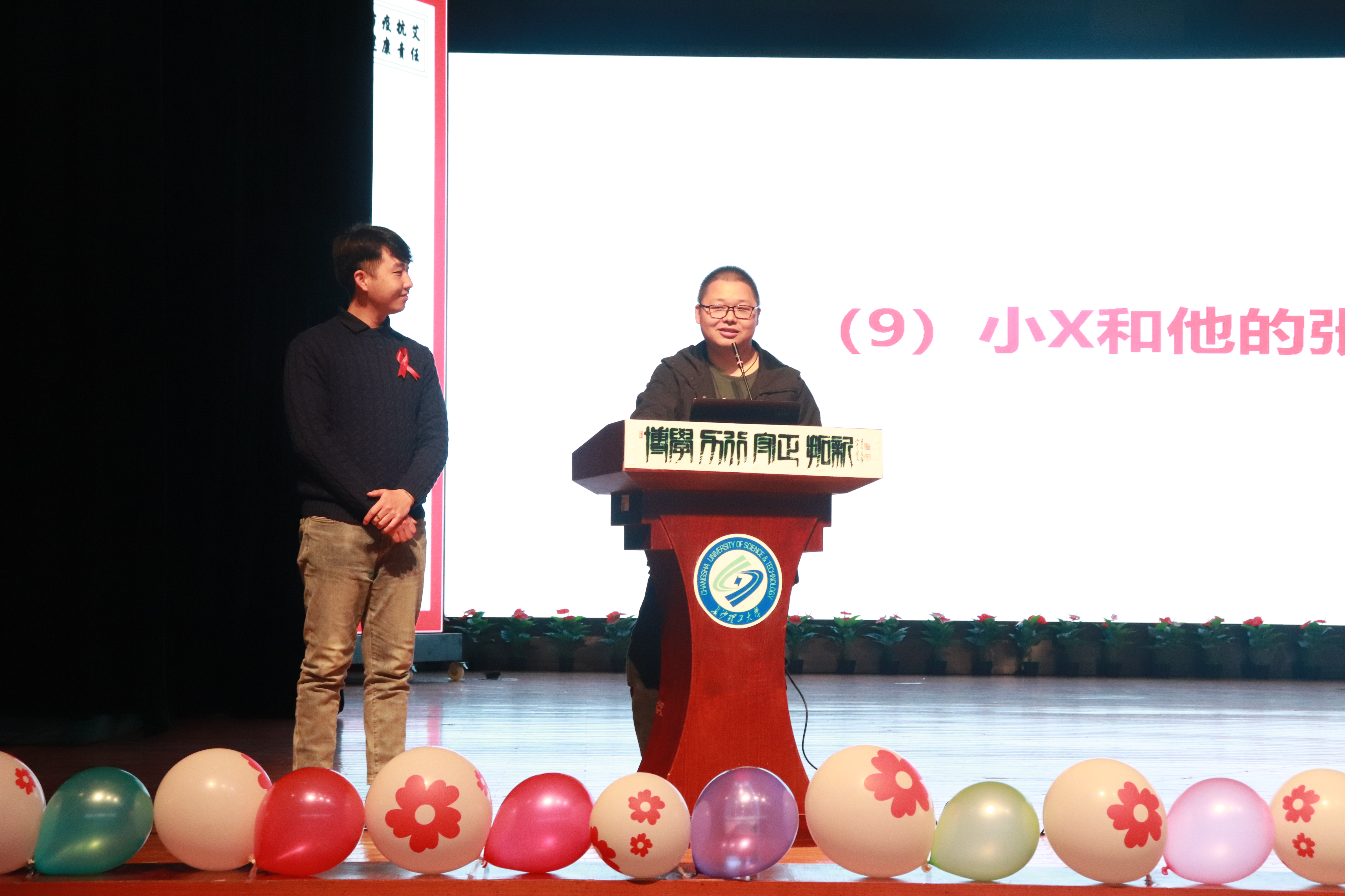向愈寒用风趣生动的语言向师生介绍了艾滋病的五大危害和艾滋病的发展史,指明了全球、全国和湖南省最新的艾滋病疫情现状,并着重讲解了艾滋病的主要传播途径、窗口期和潜伏期、预防艾滋病最经济有效的办法以及暴露后预防紧急处置措施等。他还积极与同学们互动交流,进行了有奖问答,同学们热情高涨、踊跃参与,现场气氛非常活跃。