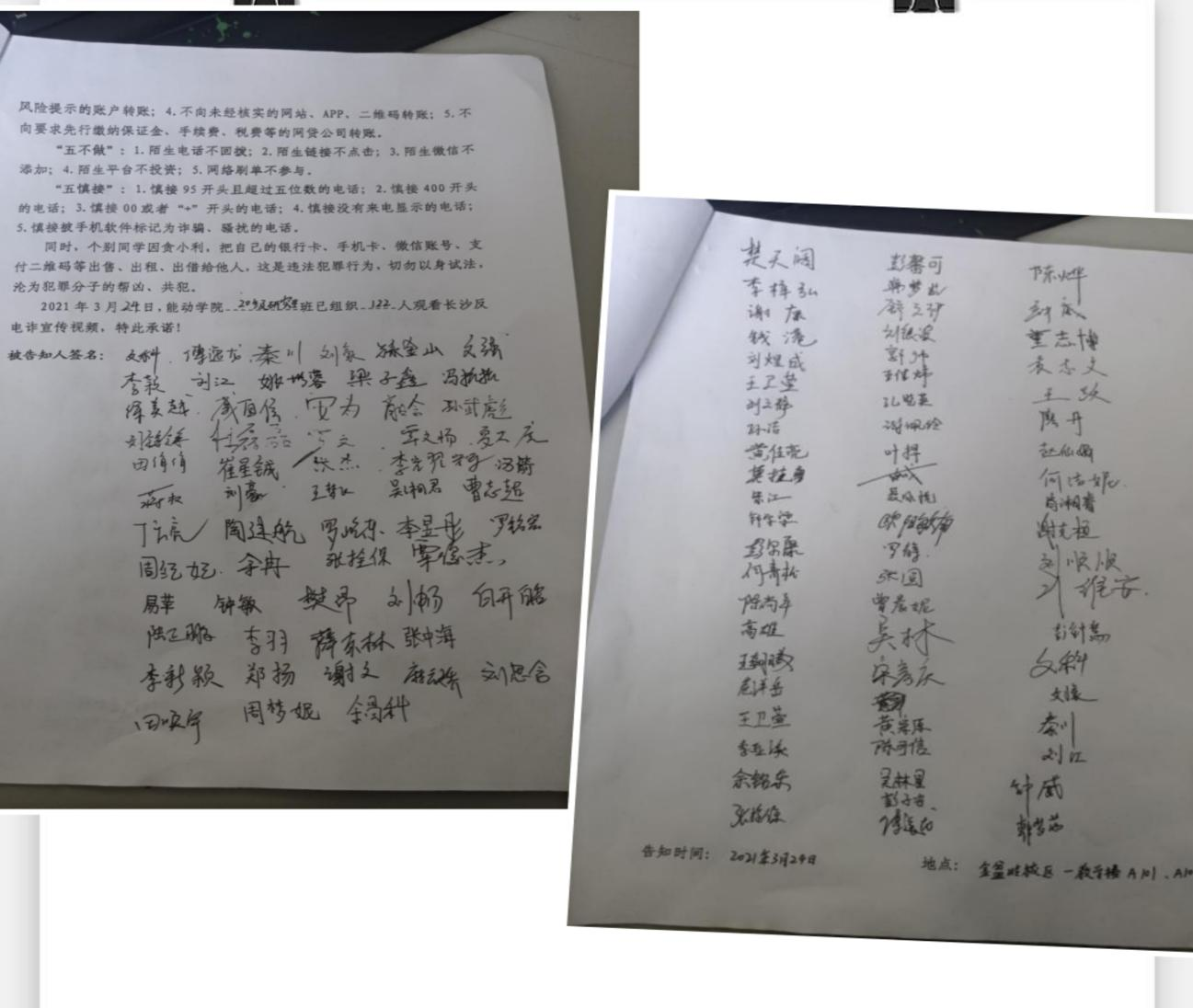 为切实做好研究生校园安全教育工作,保护学生人身和财产安全,提高研究生识骗、防骗意识和能力,预防和减少电信诈骗案件的发生,学院研究生组织开展了一系列安全教育活动。