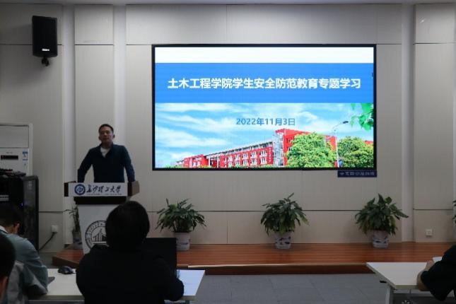 邓文杰以金盆岭校区西二一楼寝室起火事件作为案例,强调了“消防安全无小事”,提醒大家应当时刻注意消防安全。他例举了一些不规范用电现象,并表示学院日后将会严查此类行为。
