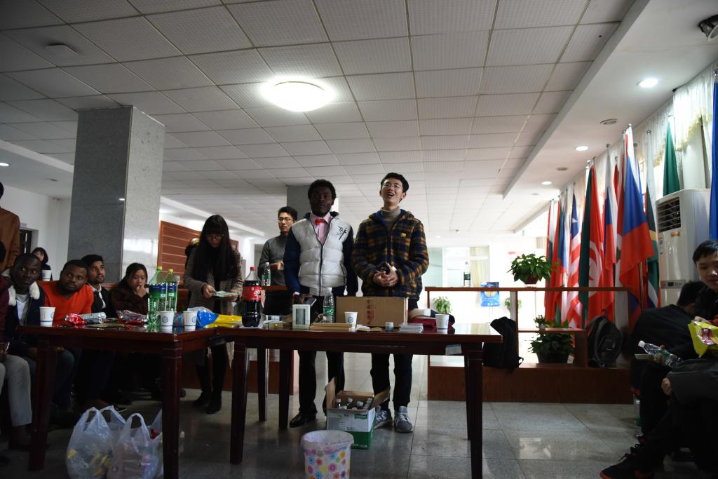 来自印度尼西亚的黄文明同学和来自基里巴斯的特巴诺同学吉他弹唱了中文歌曲《月亮代表我的心》,温馨愉快的茶话会拉开了序幕。他们的表演得到了热烈欢迎,在座全体同学都跟随他们的歌声一起歌唱。随后,每个同学在座位上轮流分享一个学期结束后的所见所感,以及自己对于新年、对于新学期的期待和希望。来自哈萨克斯坦的爱奖同学开心地表示,过去的一个学期每一天都很充实,还认识了很多新朋友;来自利比里亚的孙参同学则希望新的一年,要更努力学习,让自己的汉语水平能有更大的进步。