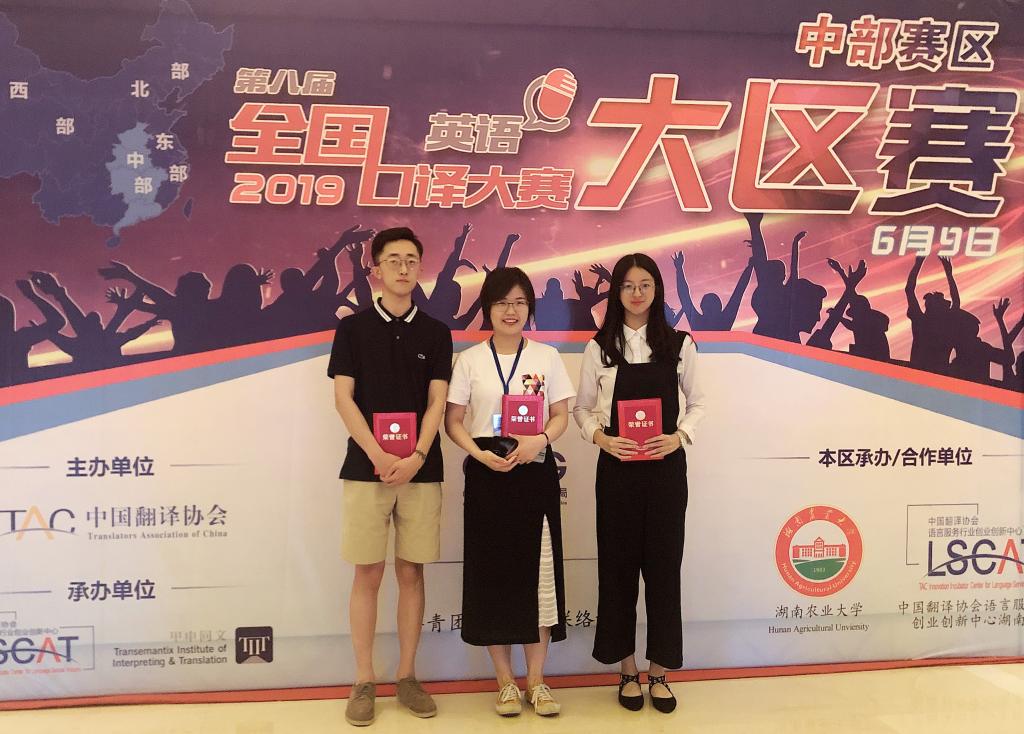 6月9日,由中国翻译协会主办的第八届全国口译大赛(英语)中部赛区大区赛在湖南农业大学顺利完赛。来自河南、湖北、湖南、江西和广东五省高校的136名优秀代表同台竞技,必赢官网翻译专业17级本科生金书琦和英语笔译专业18级研究生吴显豪夺得大赛三等奖,外国语学院毛岚荣获优秀指导老师奖。