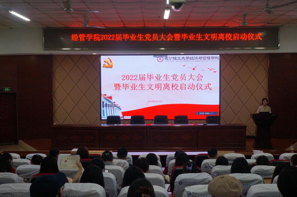 5月19日下午,经管学院2022届毕业生党员大会暨毕业生文明离校启动仪式在云塘校区文科楼A200召开。学院党委副书记唐青、党建辅导员叶鑫及2022届本科毕业生全体党员参加会议。