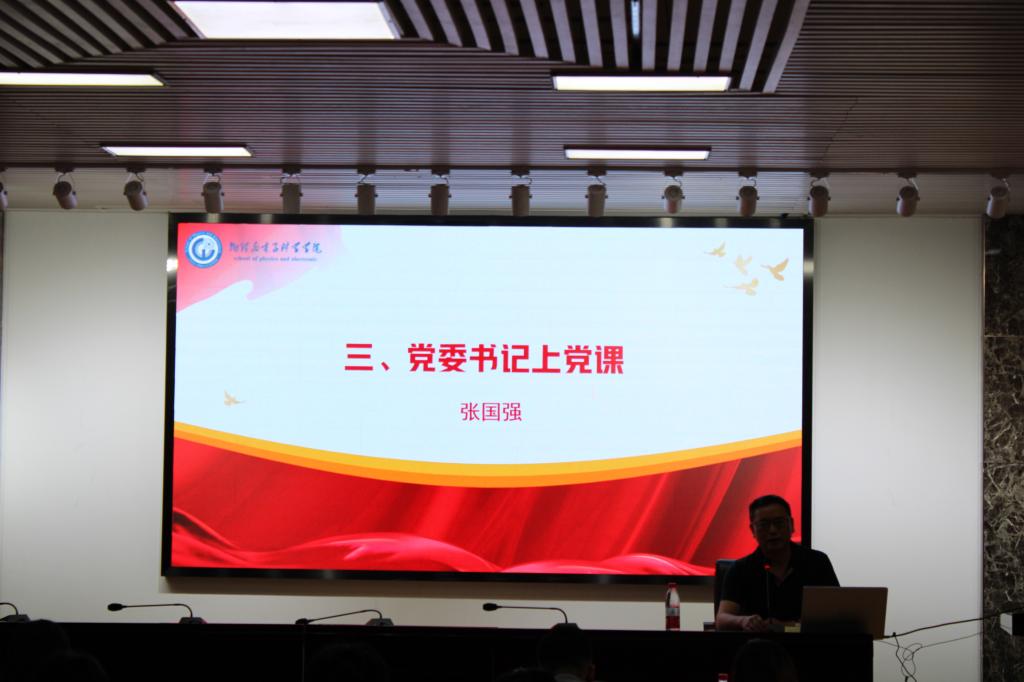 会议最后,由院党委书记张国强为毕业生党员上党课。课程最后,张国强书记为所有毕业生党员们赠送三句寄语:各位毕业生党员要常怀感恩之心,要拥有长远眼光,要永持道德之心。张书记句句真切,并表示充分相信毕业生党员们在新的征途中继续发挥物电学院的优良传统,不断学习不断进步不断贡献。
