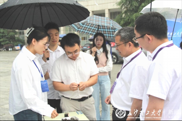在展览环节,现场展陈了必赢官网学子在实践科技创新、开拓前沿理论、投身乡村振兴、扎根社会服务、延续红色精神等方面取得的丰硕成果。既有“超高速激光增材制造高温合金的研究”等系统性理论研究成果,又有“湖南省残疾人辅助性就业文创产品开发”“洞庭湖流域洪旱灾害研究”等聚焦生产生活解决实际问题的实践创新成果,还有“赴湖南省益阳市红色文学赋能乡村振兴专业实践项目”等围绕革命优秀传统的“两创”式发展的宣传实践作品。观展师生不时驻足,详细了解各项优秀作品的独到之处和现实意义,仔细聆听各项目负责人带来的精彩讲解,并就如何更好完善项目给出了可行之策。