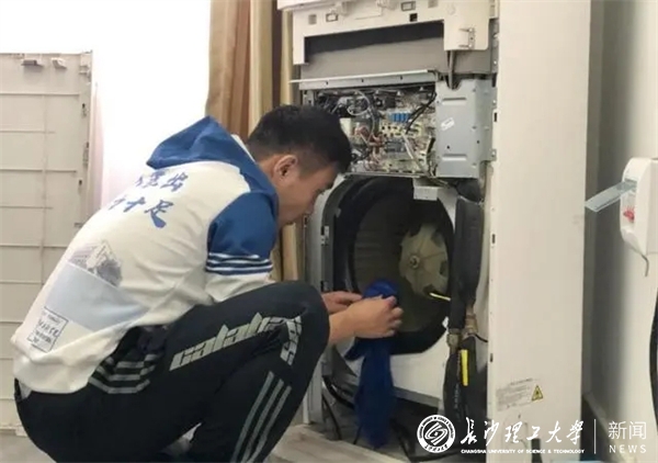 交通学院将劳动教育融入义务维修活动中。同学们遇到宿舍柜门无法正常闭合、抽屉滑轨脱落、卫生间插销损坏等情况,只需要通过“交通青年学生社区”公众号的“维修通道”栏目进行报修,学院义务维修队与学生社区自管会成员就会“上门”服务。这一措施解决了不少学生宿舍基础设施损坏问题,广受同学们好评,“非常感谢义务维修队提供的服务,帮助我们宿舍迅速解决了柜门消磁的问题。”一名交通学院学生表示。