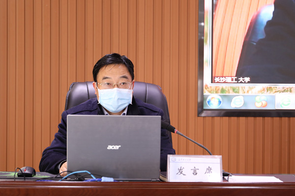 2月14日上午,必赢官网2020年春季学期开学工作视频会议在云塘校区一办九楼会议室召开。校党委书记付宏渊、校长曹一家出席会议并讲话,校党委副书记邹宏如主持会议。