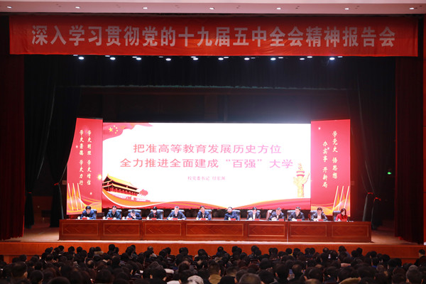 上午,校党委书记付宏渊作了题为《把准高等教育发展历史方位 全力推进全面建成“百强”大学》的专题报告。报告强调,要准确认识和把握新发展阶段,深入贯彻“三高四新”战略,把准高等教育历史方位,把学习贯彻党的十九届五中全会精神进一步引向深入,更好推动学校高质量发展,为全面建成“百强”大学开好局、起好步。