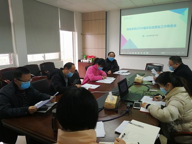 为进一步推进2020届毕业生就业工作,3月13日下午,物电学院在理科楼C522会议室召开2020届毕业生就业工作推进会。院长刘其城、院党委副书记(主持工作)唐超文,副院长刘新海、科研办主任杨雪芹、教务办主任张晖及各系主任参加了此次会议,原院党委副书记郭剑应邀参加。会议由就业专干蒋琳嫒主持。