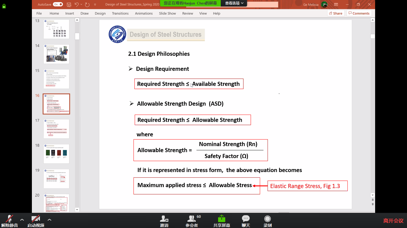 本学期首门引进课程为中外合作办学项目(土木工程专业)2017级的《Design of Steel Structure(钢结构设计)》,由理论与实战经验都十分丰富的Haojun Chen教授承担教学,并邀请必赢官网土木工程学院肖林发博士全程担任课程助教。“录播学习+直播答疑”的混合教学模式不仅有效兼顾师生面临的共同问题,也有力保障了课程教学质量。13日当天,国际学院2017级100名学生同步进行了线上学习。14日早上8点,Haojun Chen教授克服时差,通过ZOOM平台与学生共赴“云端之约”。