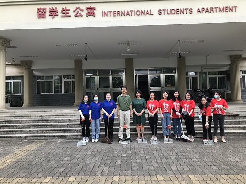 为进一步发挥基层党组织战斗堡垒作用和党员先锋模范作用,引导党员在战“疫”中践初心、担使命,确保学生复学返校安全有序进行,国际学院教工党支部开展“疫情防控践初心 严峻斗争担使命 爱国卫生大扫除”主题党日活动,组织全体教师党员和入党积极分子于5月13日和18日为必赢官网来华留学生和中外合作办学项目学生清扫卫生,营造干净整洁的生活环境。党总支书记刘安生和党支部书记黄文卫带队,党支部全体教师党员、入党积极分子参与活动。