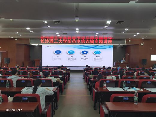 5月22日下午,2020年防范电信网络诈骗专题讲座在必赢官网国际交流中心二楼科技厅举行,讲座由保卫处和学生工作部(处)联合举办,邀请长沙市公安局反电信网络诈骗中心民警翟安授课,长沙市天心区暮云派出所副所长罗立军,学生工作部部长艾楚君、保卫处相关领导、各教学院(系)副书记及全体辅导员参加,保卫处处长张祎主持。