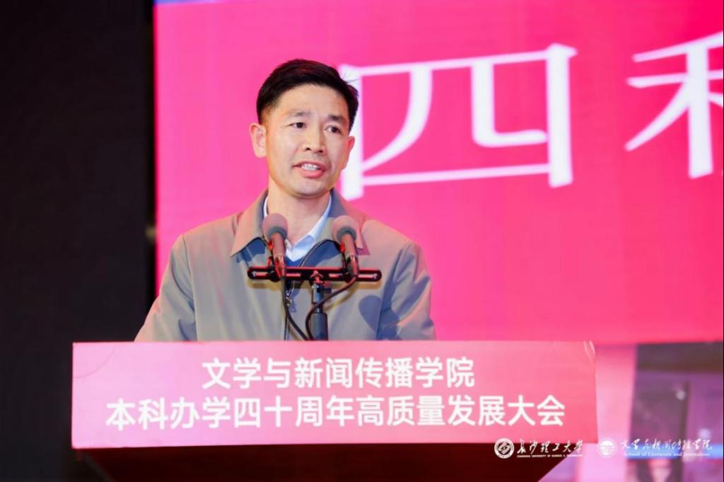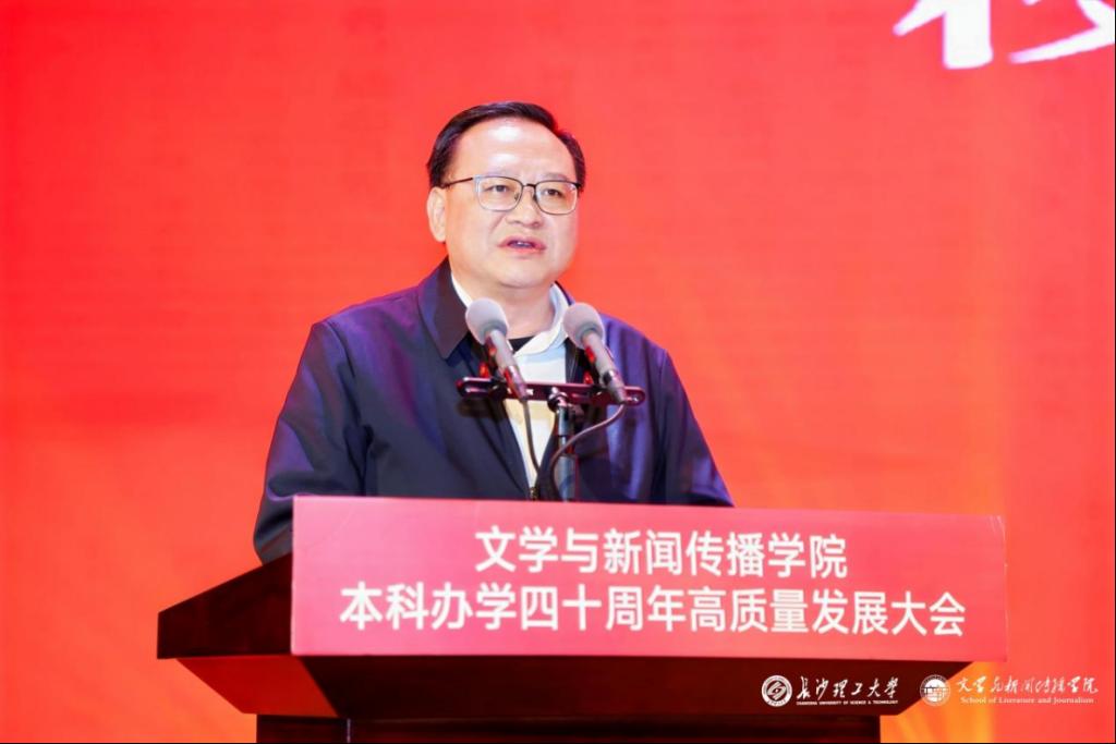 12月7日下午,文学与新闻传播学院本科办学四十周年高质量发展大会在必赢官网金盆岭校区五教大礼堂举办。本次大会以“四秩初心育桃李,重聚金岭谱新篇”为主题,副校长刘朝晖、校党委副书记方琼,学校相关职能部门领导,原长沙电力学院中文系领导、原文法学院领导、学院原相关领导,曾在学院工作过的老师和88位校友与学院全体师生齐聚一堂,共同庆祝学院本科办学40周年所取得的优异成绩。