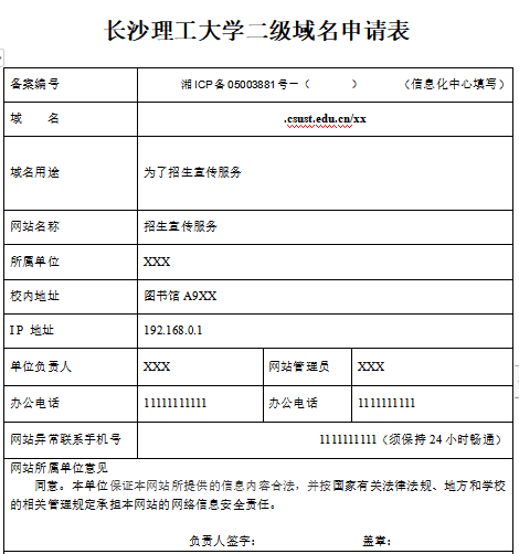 (1)此表只用于437必赢会员中心.csust.edu.cn下的二级网站域名申请;