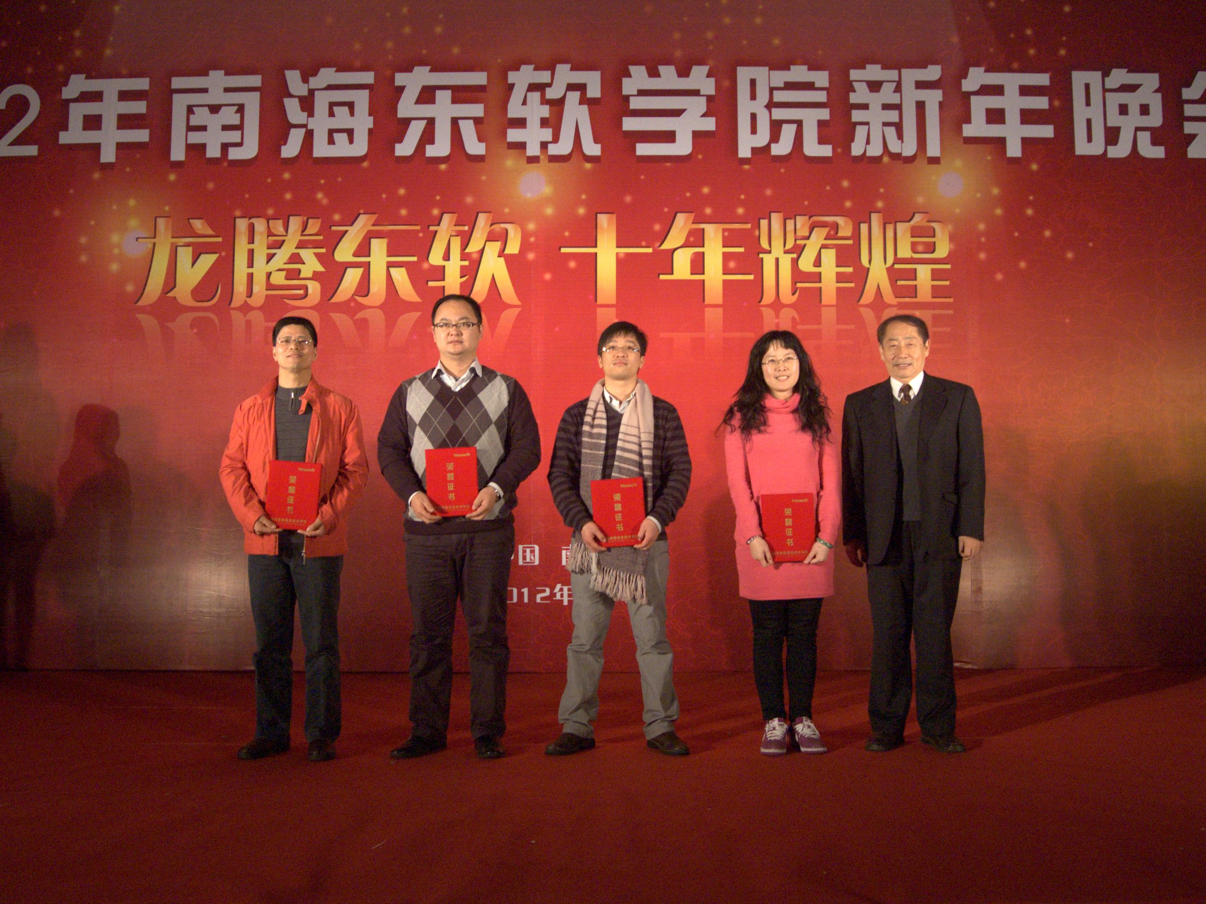 回首过去的一年,我院在各个方面取得的成绩有目共睹,硕果累累:跻身2011中国民办大学排行榜100强、荣获2011年全国职业院校“魅力校园”称号、迎来2900名2011级新生报到率在广东省民办高校排名第二、院长杨利博士荣获由中国计算机报颁发的“软件人才培养杰出贡献人物”奖等等。品牌影响力不断增强,社会美誉度不断提升,也涌现出了一大批敬业爱岗的优秀教职员工。晚会中,学院领导为获得“2011年度优秀团队”、“2011年度优秀教师”、“2011年度优秀教育工作者”、“2011年度优秀辅导员”、“2011年度优秀新员工”、“2011年度最受学生欢迎教师”等称号的教职员工进行颁奖。