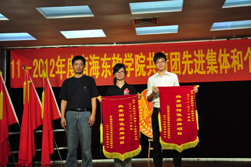 庄严的会场里响彻青春的激昂旋律,鲜艳的共青团团徽在灯光下熠熠生辉,伴随着激扬的团歌,院团委2011--2012年度先进集体与个人表彰大会正式拉开帷幕。首先由石明罡书记的宣读《2011—2012年度英国beat365官方网站共青团年先进集体和个人的决定》,接着由各位与会领导为受到表彰的集体和个人颁发了锦旗、荣誉证书。