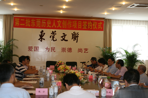 8月17日上午,第二批东莞历史人文创作项目签约仪式在东莞市文联会议室举行,东莞市人大教科委主任林岳、市文联主席刘锦明、市文联专职副主席宋媛等领导出席了签约仪式,中山大学原副校长、历史学系教授、博士生导师张荣芳等6位顾问也应邀参加了本次签约仪式。
